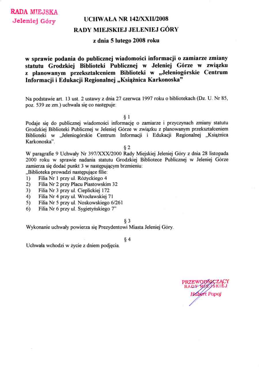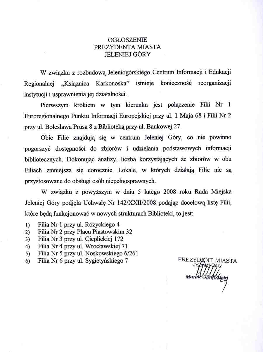 dnia 12 grudnia br. JCIiER - Książnica Karkonoskia łącznie z filiami będzie czynna od godz. 1200.