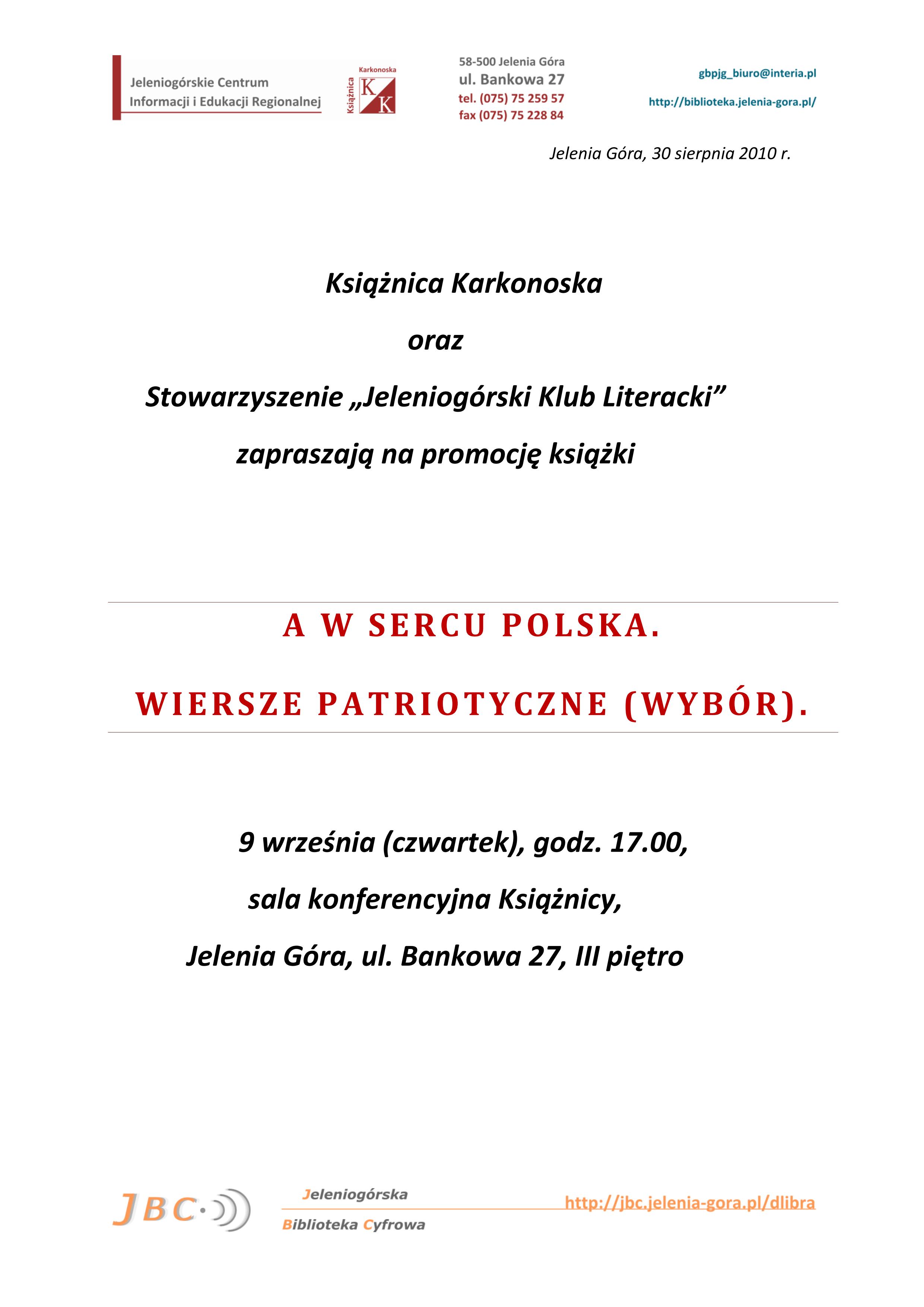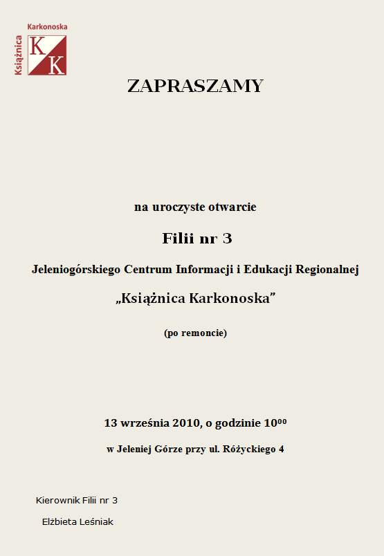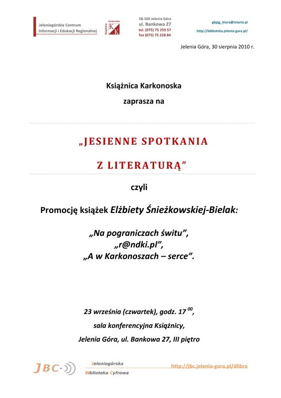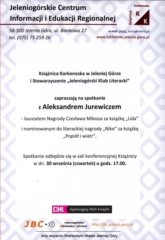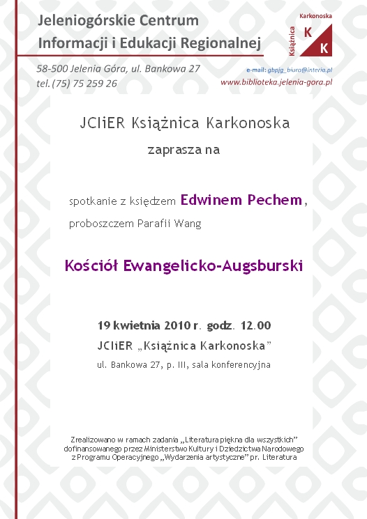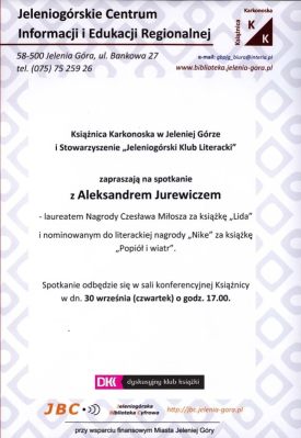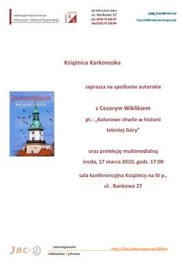 Jeleniogórskie Centrum Informacji i Edukacji Regionalnej „Książnica Karkonoska” dziękuje fundatorom nagród: