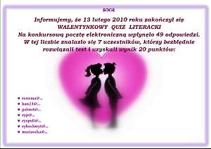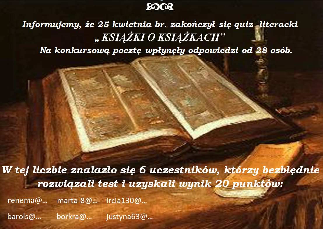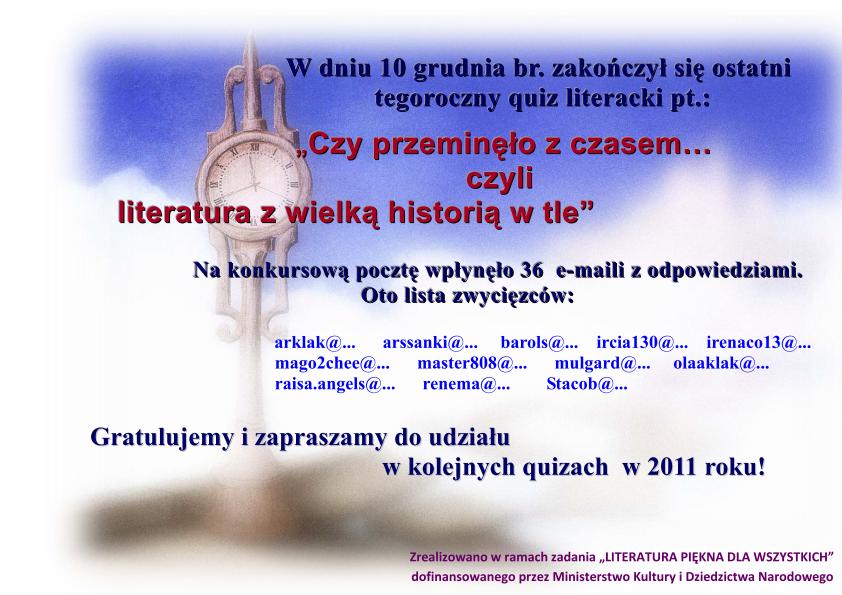 Ogłoszenie wyników quizu literckiego "Czy przemineło z czasem... "