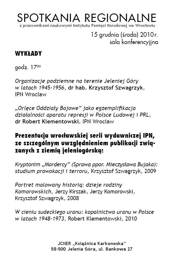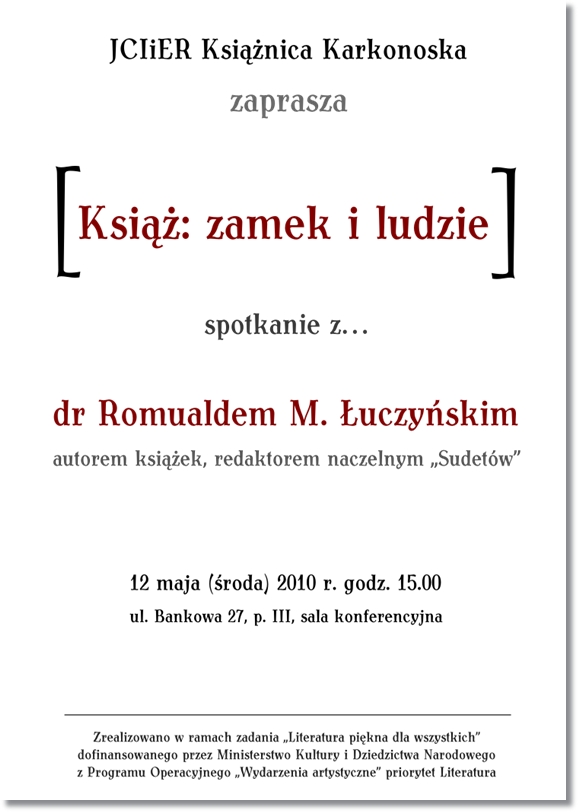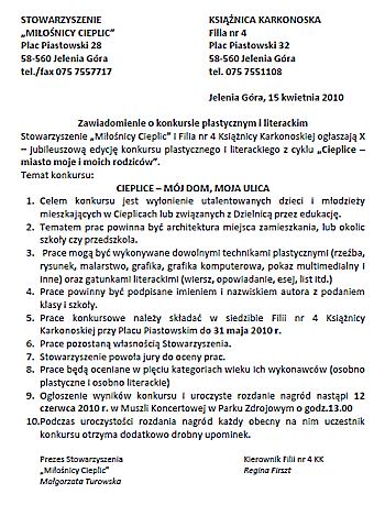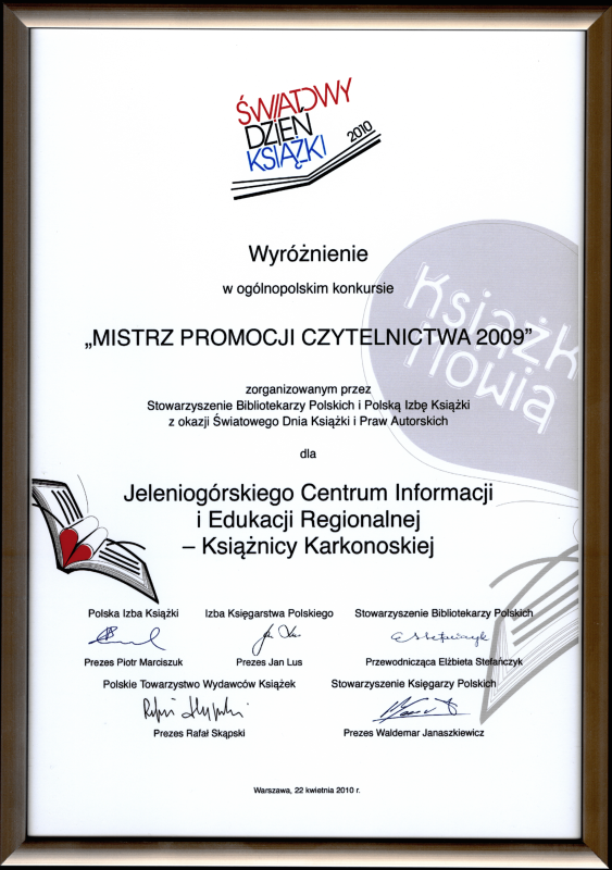 Uroczyste ogłoszenie wyników i wręczenie nagród odbędzie się 13 lutego 2010 o godz. 11.00 w sali konferencyjnej Książnicy Karkonoskiej.