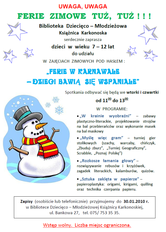 Ferie zimowe w Bibliotece Dziecięco-Młodzieżowej