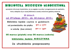 ZMIANIE ULEGAJĄ GODZINY OTWARCIA FILII NR 6
