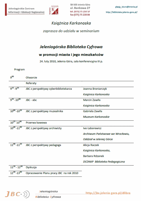 Zapraszamy na Seminarium nt. Jeleniogórskiej Biblioteki Cyfrowej