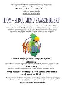Wypowiedź konkursowa powinna zawierać uzasadnienie i nie może przekraczać 1500 znaków ze spacjami. Do wygrania atrakcyjne nagrody: laptopy, drukarki, mp3 i audiobooki. Nagrodzeni zostaną nie tylko uczestnicy, ale również biblioteki, które zostaną wskazane w formularzu konkursowym.
