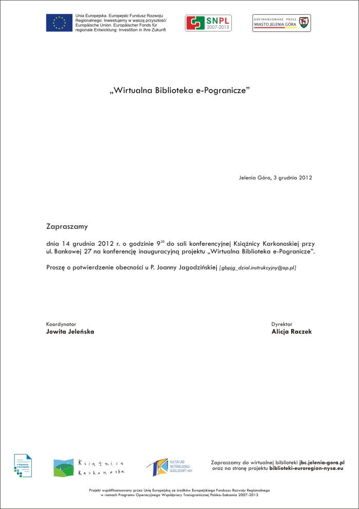 Konferencja inauguracyjna projektu Wirtualna biblioteka e-Pogranicze