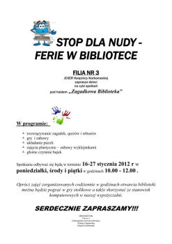 7 stycznia 2012 (sobota) biblioteka będzie nieczynna.