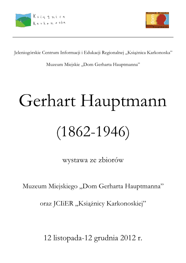 Informujemy szanownych czytelników, iż w ramach obchodów Roku Hauptmannowskiego związanego ze sto pięćdziesiątą rocznicą urodzin Gerharta Hauptmanna oraz z setną rocznicą przyznania pisarzowi Nagrody Nobla, Muzeum Miejskie Dom Gerharta Hauptmanna oraz Książnica Karkonoska w Jeleniej Górze zapraszają Państwa do uczestnictwa w wyzwaniu czytelniczym.