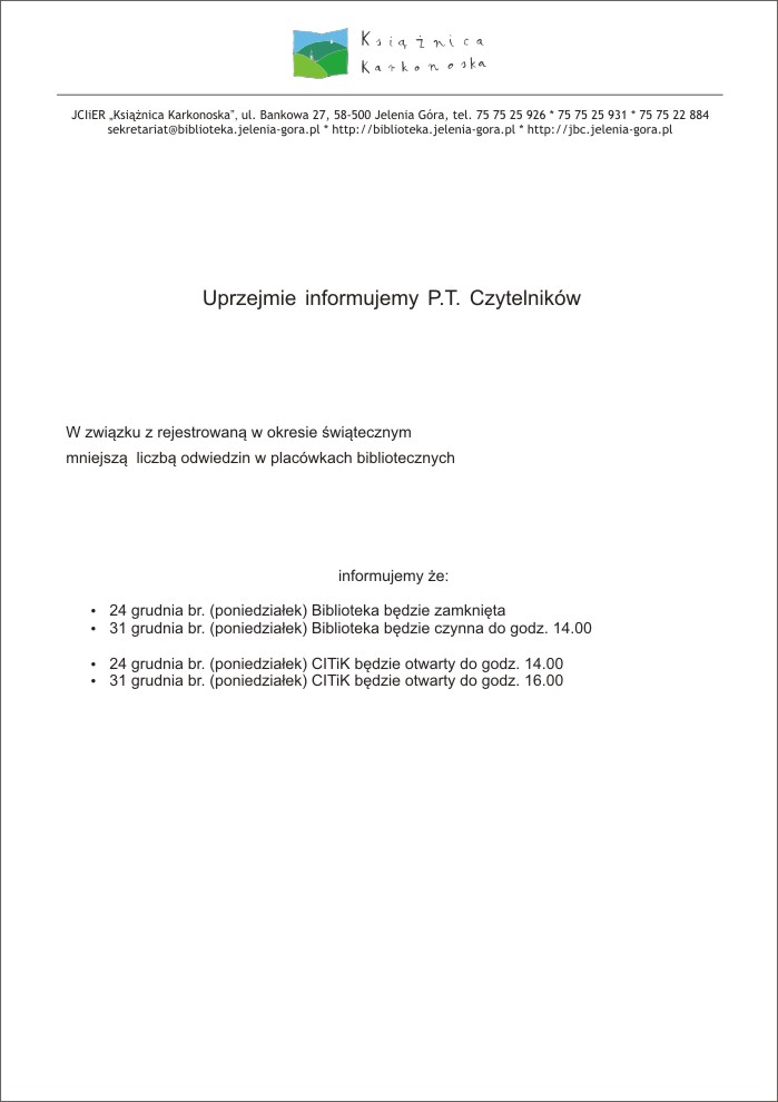 życzą pracownicy Książnicy Karkonoskiej