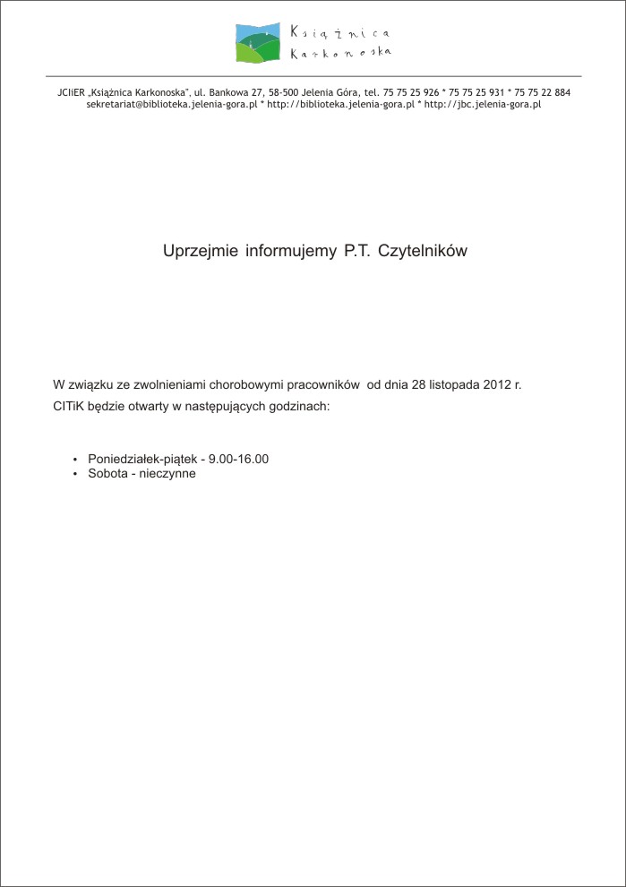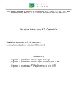 Zmiana godzin pracy biblioteki