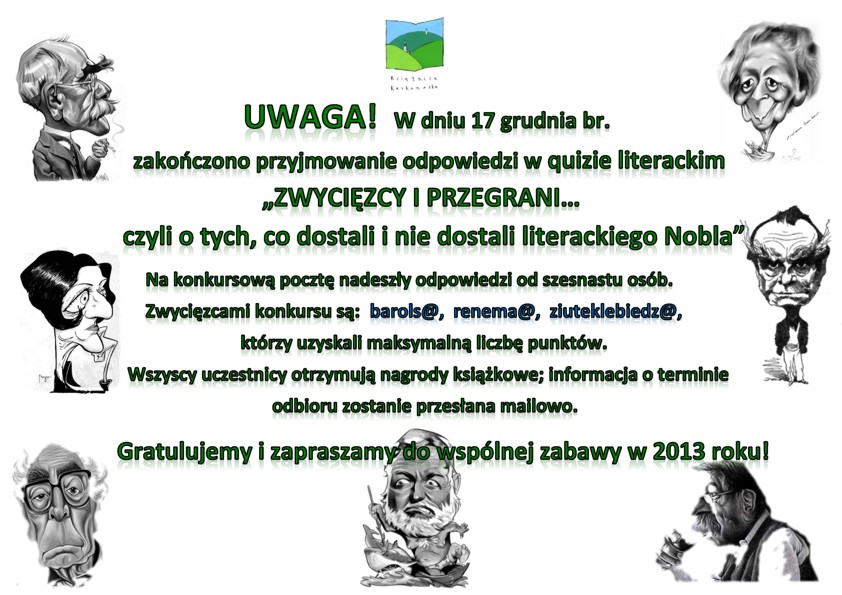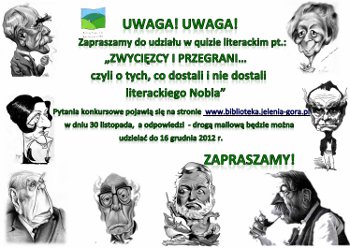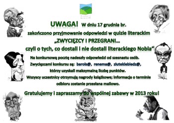 Quiz literacki "Zwycięzcy i przegrani... czyli o tych, co dostali i nie dostali literackiego Nobla"