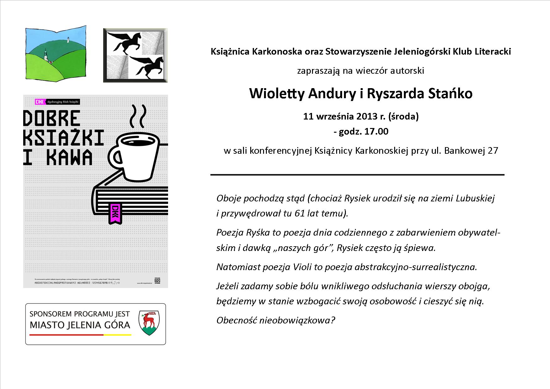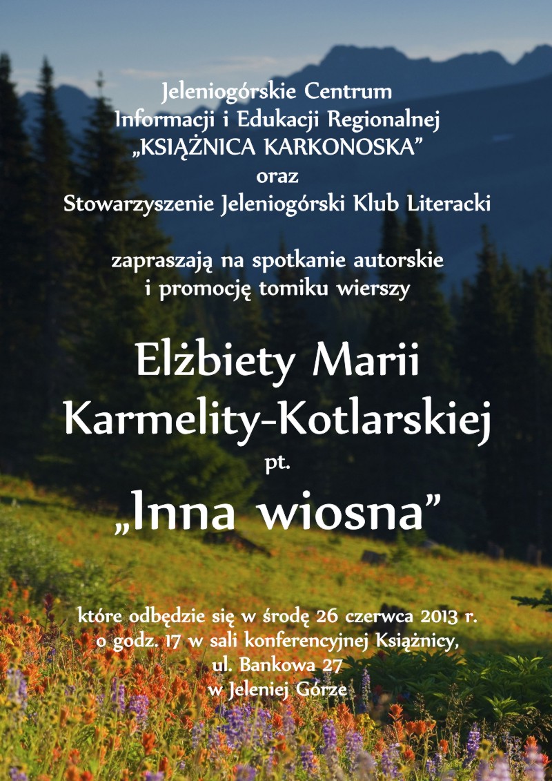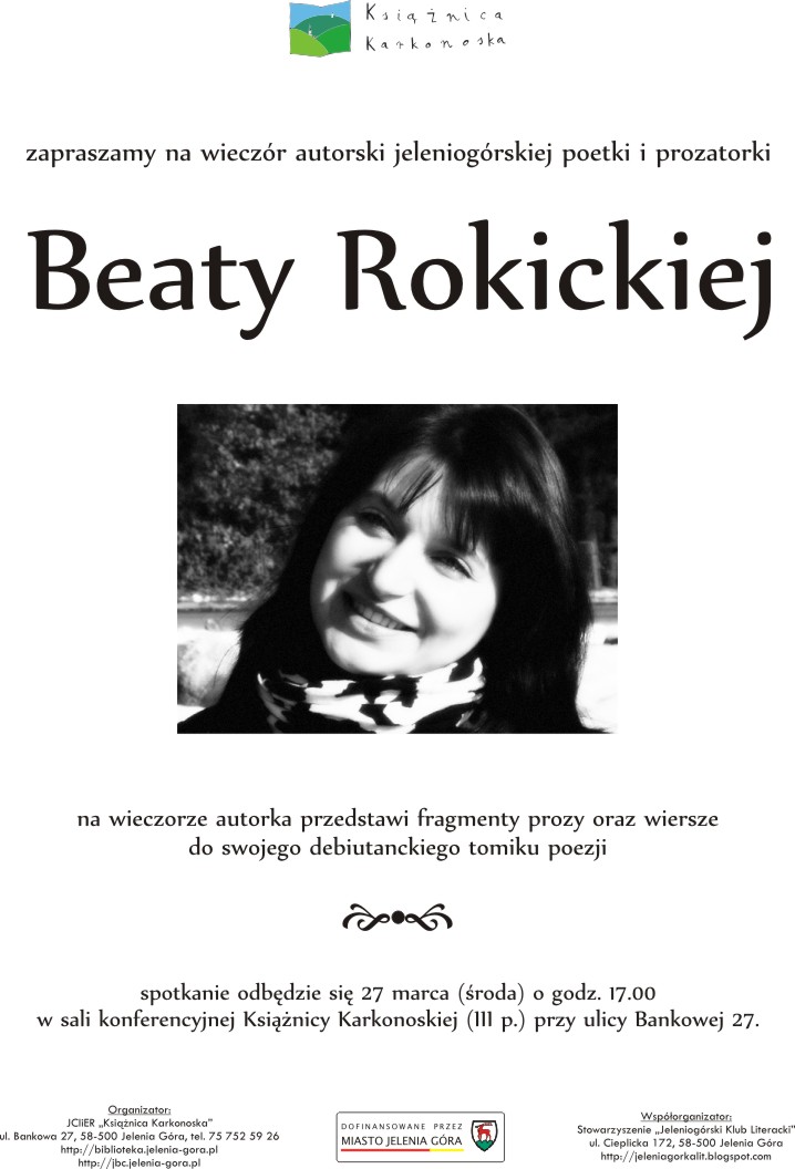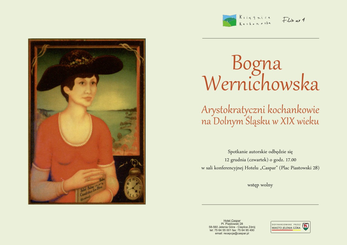 JCIiER Książnica Karkonoska oraz stowarzyszenie „Jeleniogórski Klub Literacki” zapraszają na wykład dr Aliny Bernadetty Jagiełłowicz z Uniwersytetu Wrocławskiego.