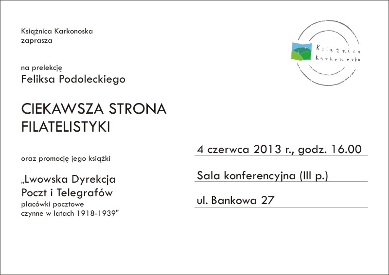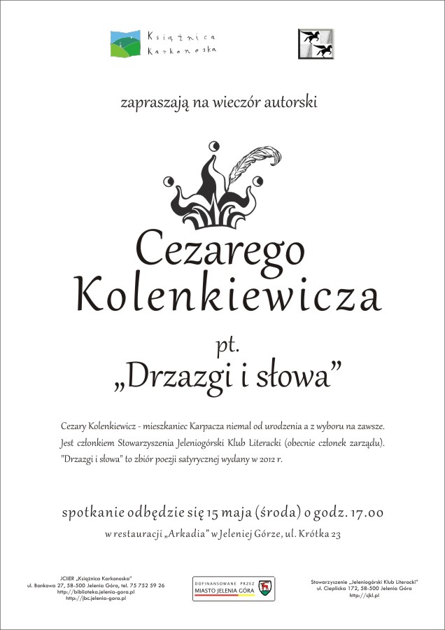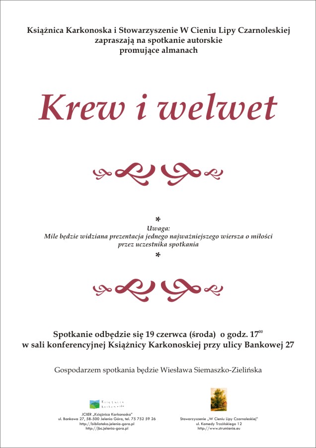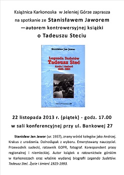 Spotkanie odbędzie się 20 lutego (środa) o godz. 17.00 w sali konferencyjnej Książnicy Karkonoskiej (IIIp.) przy ulicy Bankowej 27.