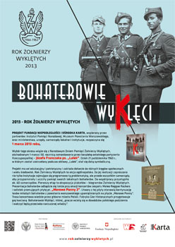 „2013 - rok żołnierzy wyklętych” jest projektem Fundacji Niepodległości oraz Ośrodka KARTA. Wspierany jest przez Instytut Pamięci Narodowej, Muzeum Powstania Warszawskiego oraz ministerstwa, samorządy lokalne i instytucje. Rozpoczyna się 1 marca 2013 roku.