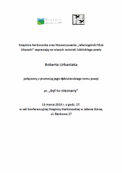 Promocja tomu poezji Roberta Urbaniaka - "był tu nieznany"
