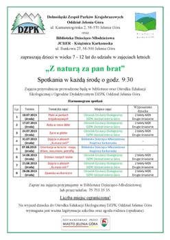 Dolnośląski Zespół Parków Krajobrazowych Oddział Jelenia Góra zaprasza uczniów szkół gimnazjalnych do wzięcia udziału w konkursie plastycznym pt. „Przyrodniczy kalejdoskop”.