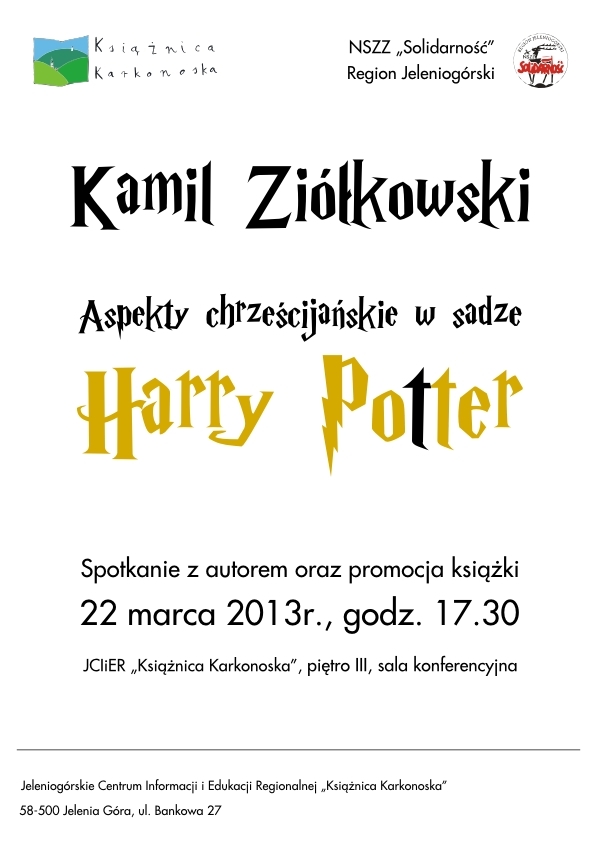 Spotkanie autorskie: Kamil Ziółkowski - Aspekty chrześcijańskie w sadze Harry Potter