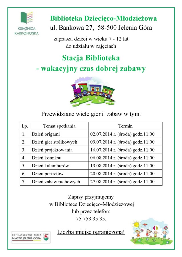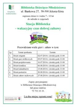 Uprzejmie informujemy P.T. czytelników, że od 23 czerwca do 30 sierpnia 2014 r.