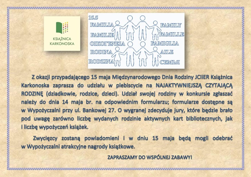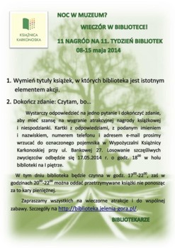 Z okazji ogólnopolskich obchodów 25. rocznicy wyborów 4 czerwca 1989 Książnica Karkonoska zaprasza do udziału w grze "ZnajZnak", która przeprowadzona zostanie 04.06.2014 r. (środa) przed biblioteką przy ul. Bankowej 27 w godzinach od 10:15 do 14:00 lub w razie deszczu w budynku (w Galerii na trzecim piętrze).