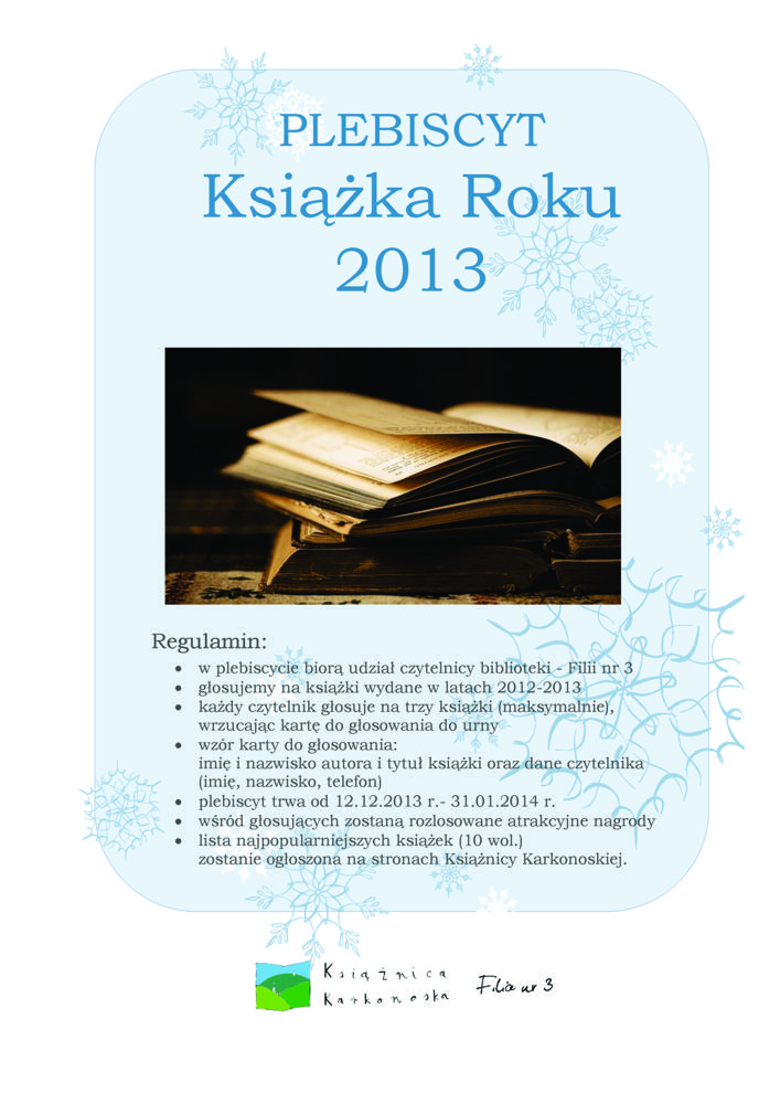 W plebiscycie zorganizowanym przez Filię nr 3 Jeleniogórskiego Centrum Informacji i Edukacji Regionalnej-Książnica Karkonoska wzięły udział 44 osoby.
