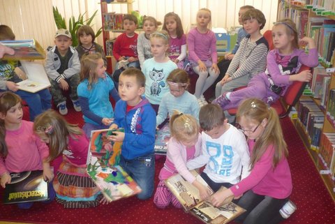 Lekcja biblioteczna - dzieci z przedszkola Kubuś Puchatek - 19.04.2013